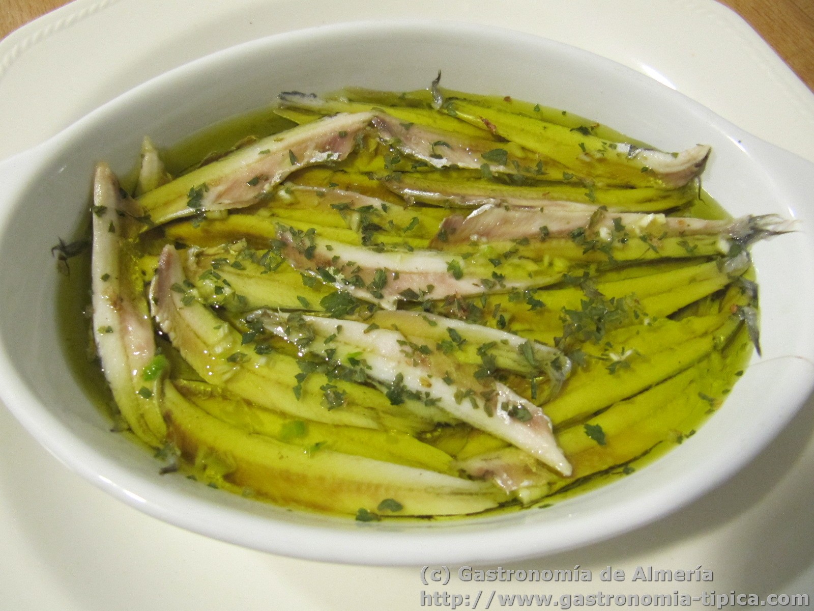 Se pelan los boquerones. Se les quita la cabeza y se ponen en un tapper rebozados con sal 24 h.