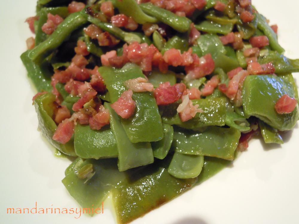 Saltea un poco y añade las judías, mueve y rehoga unos 5 minutos, prueba de sal y añade si hace falta. Apaga el fuego y deja reposar para que se impregne todo junto.