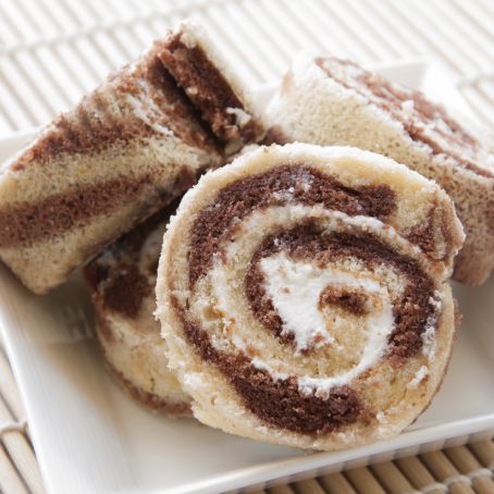 Deja que el rollo se enfríe antes de desenrollarlo. Desenróllalo y rellénalo de la crema a base de mascarpone. Vuelve a enrollar.