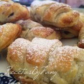 Esta es una versión de las napolitanas de chocolate pero en forma de croissants... Están riquísimos! Y son un éxito siempre. Además se hacen muy rápido y no necesita apenas ingredientes.