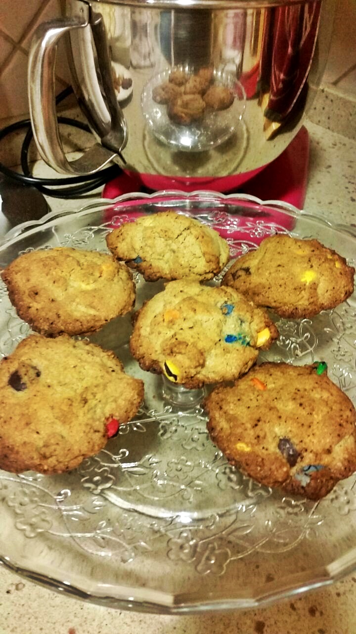 Con las varillas mezclamos la mantequilla con el azúcar (blanca y morena) , agregar poco a poco la vainilla, el huevo y por último la harina que teníamos reservada. Mezclamos todos los ingredientes bien, terminamos agregando los Lacasitos y las avellanas picadas. Mezclamos de nuevo todo.