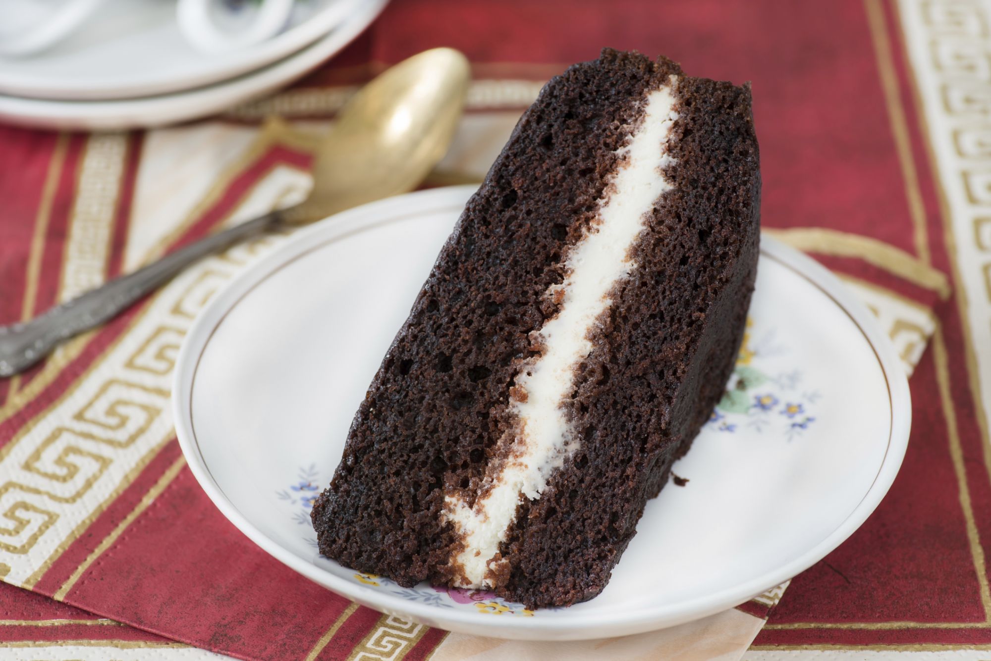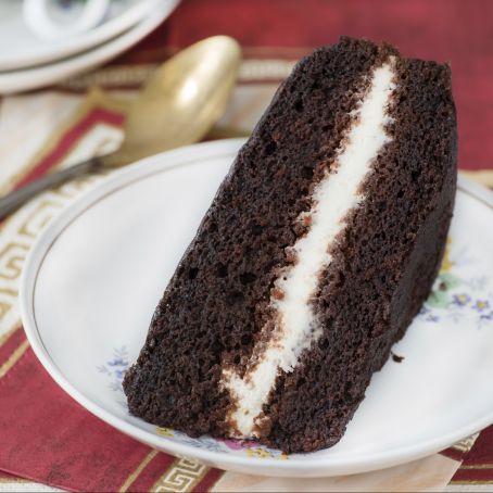 Sacar el bizcocho del horno y cortarlo horizontalmente en 2 mitades. Extender la crema que acabamos de preparar sobre una de las mitades y cubrirla con la otra.