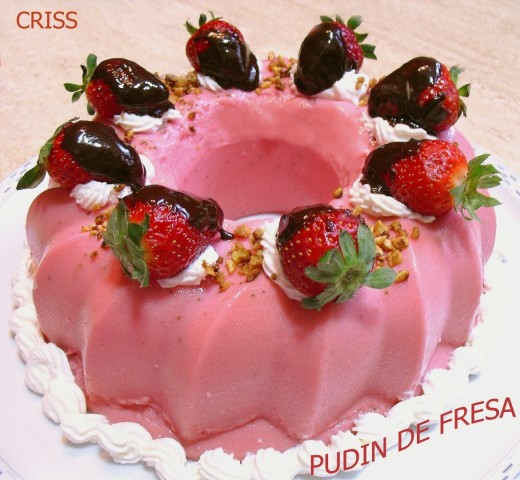 Para desmoldar introducimos el molde en agua caliente unos minutos. Dar la vuelta sobre una fuente de servir y decorar.