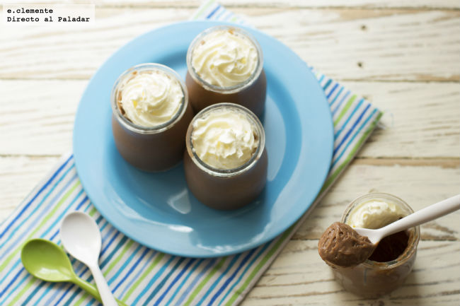 Verter la crema en el vaso de una batidora y batir a velocidad fuerte durante un minuto. Distribuir en los vasitos o copas y dejar enfriar en la nevera un mínimo de seis horas.