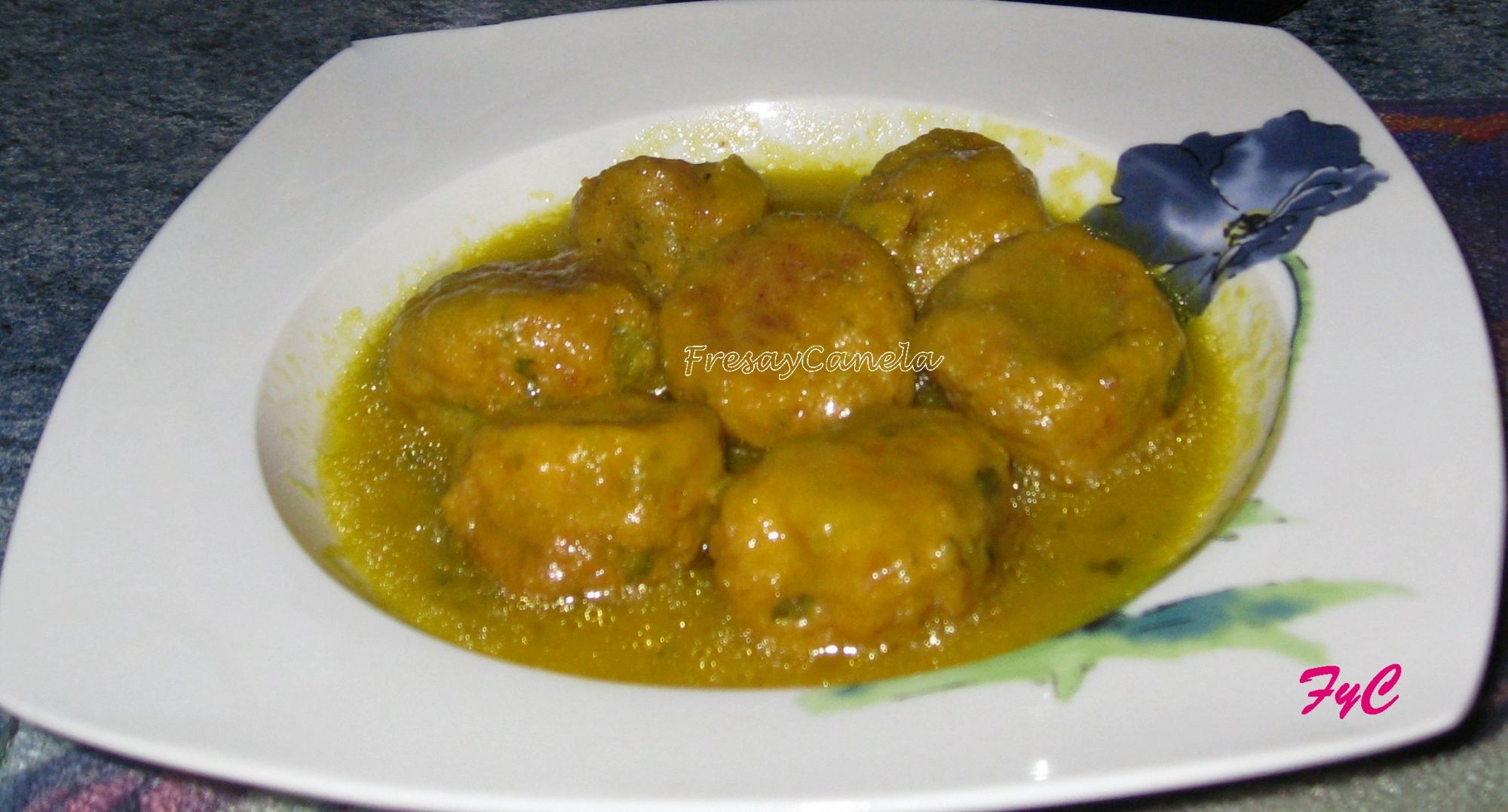 Ponemos aceite a calentar y vamos haciendo las albóndigas, las pasamos por harina y las freímos, las vamos dejando en un plato con papel absorbente para evitar exceso de grasa.