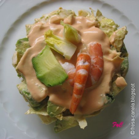 Poner un poco de salsa rosa en el bol y mezclar los ingredientes y el resto ponerlo por encima.