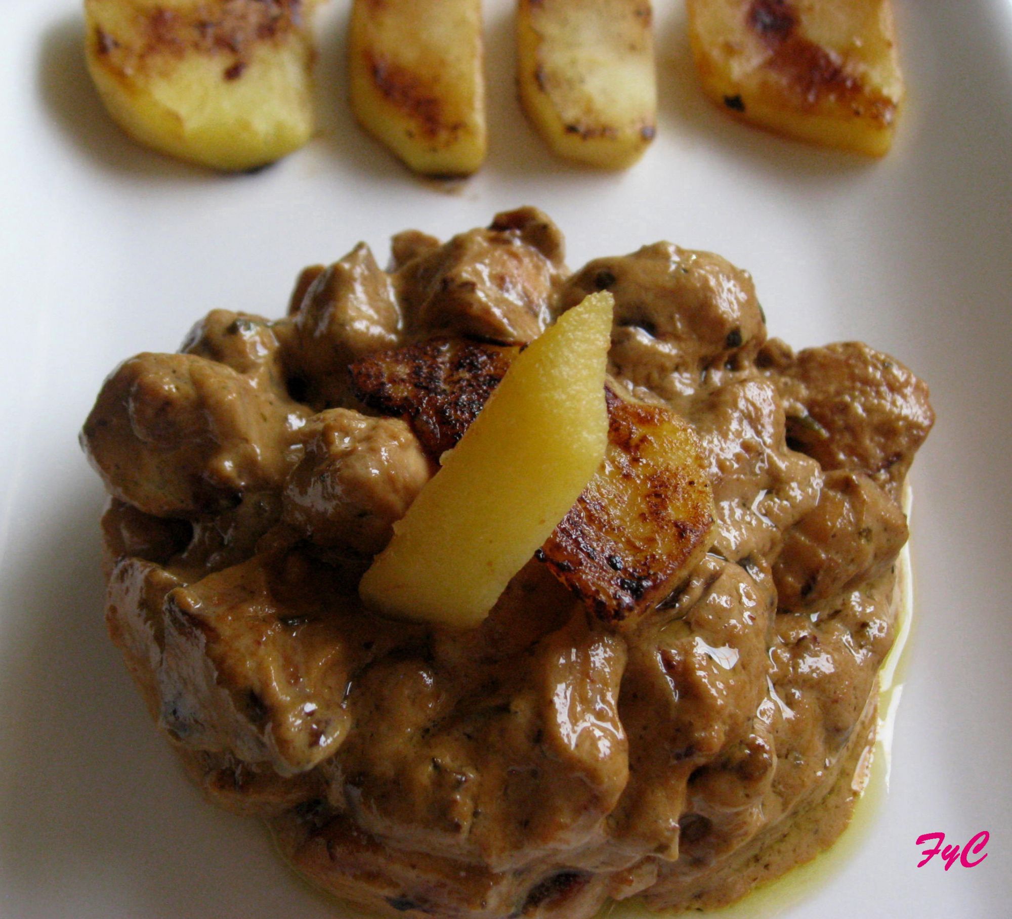 Terminamos el plato presentando el pollo junto con las manzanas.