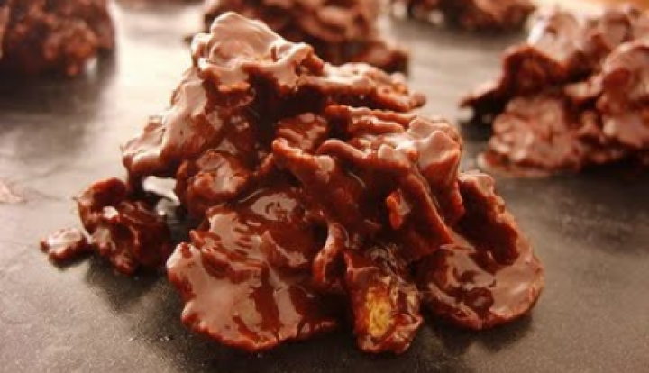 Añadir los cereales al chocolate fundido y formar bolitas sobre una lámina de papel sulfurizado.