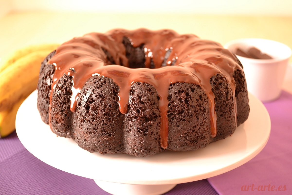 Echamos la mezcla en el molde de bundt cake o bizcocho que hayamos escogido, si no es de silicona previamente debemos engrasarlo y espolvorearlo con un poco de cacao en polvo.