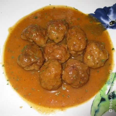 En la MYC (robot de cocina) poner el huevo, perejil, ajo, leche y las especias y batir vl. 8 unos segundos. Poner la mezcla con la carne salpimentada en un bol y añadir el pan y los piñones mezclando bien. Formar las albóndigas, pasar por harina y freír en la FussionCook menú freír y las vamos dejando sobre papel.