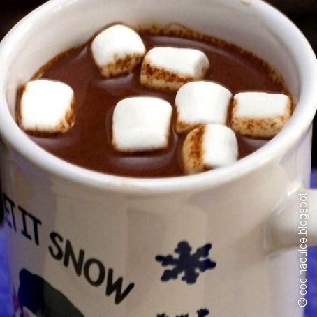Servimos el chocolate bien caliente acompañado con unas nubes pequeñitas o troceadas.