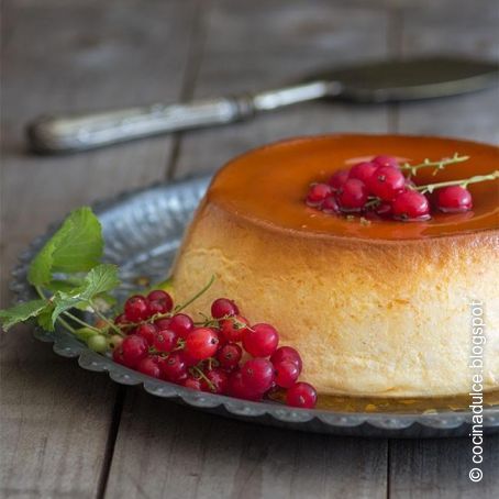 Degustación: El flan de queso es exquisito bien frío y acompañado de algún fruto rojo ácido como pueden ser las grosellas.