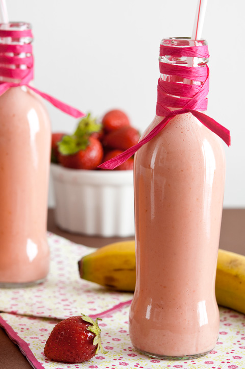Batido de plátano, naranja y fresa: