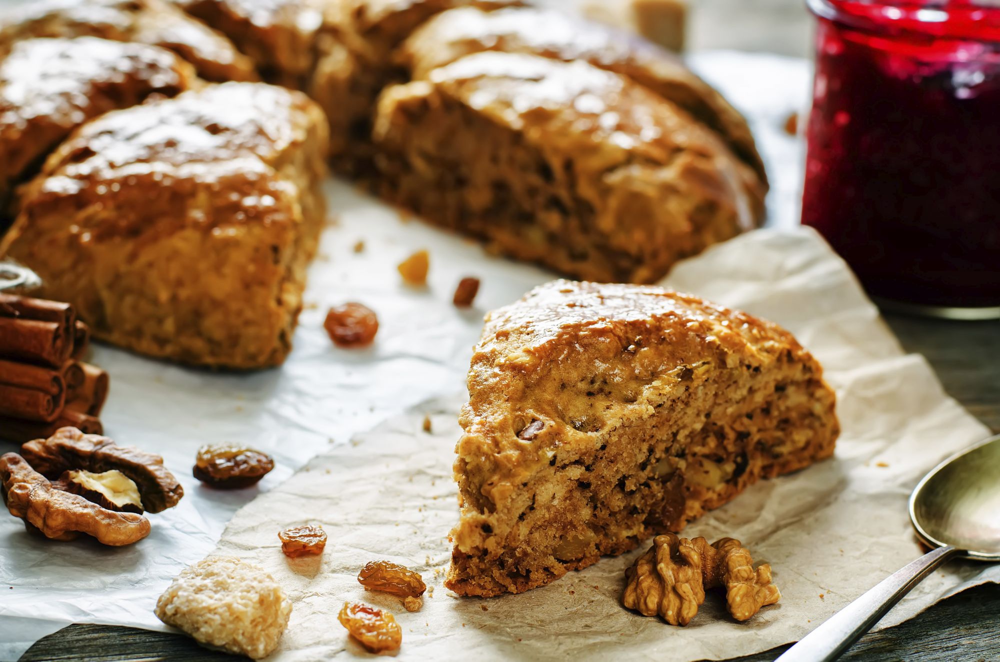 Calienta el horno a 180°C. Echa las pasas en un bol con agua caliente.