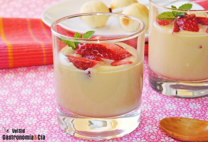 Cuando obtengas una crema ligeramente densa, suave y homogénea, viértela en los vasitos pasándola por un colador por si quedara algún grumo.