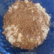 Precalentamos el horno a 180 grados. Batimos los huevos con el azúcar muy bien, hasta blanquearlos. Una vez realizado este paso echamos la harina previamente tamizada junto con el cacao.