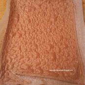 Cuando lo saquemos del horno lo ponemos sobre un paño húmedo y con el mismo papel lo enrollamos sobre sí mismo.