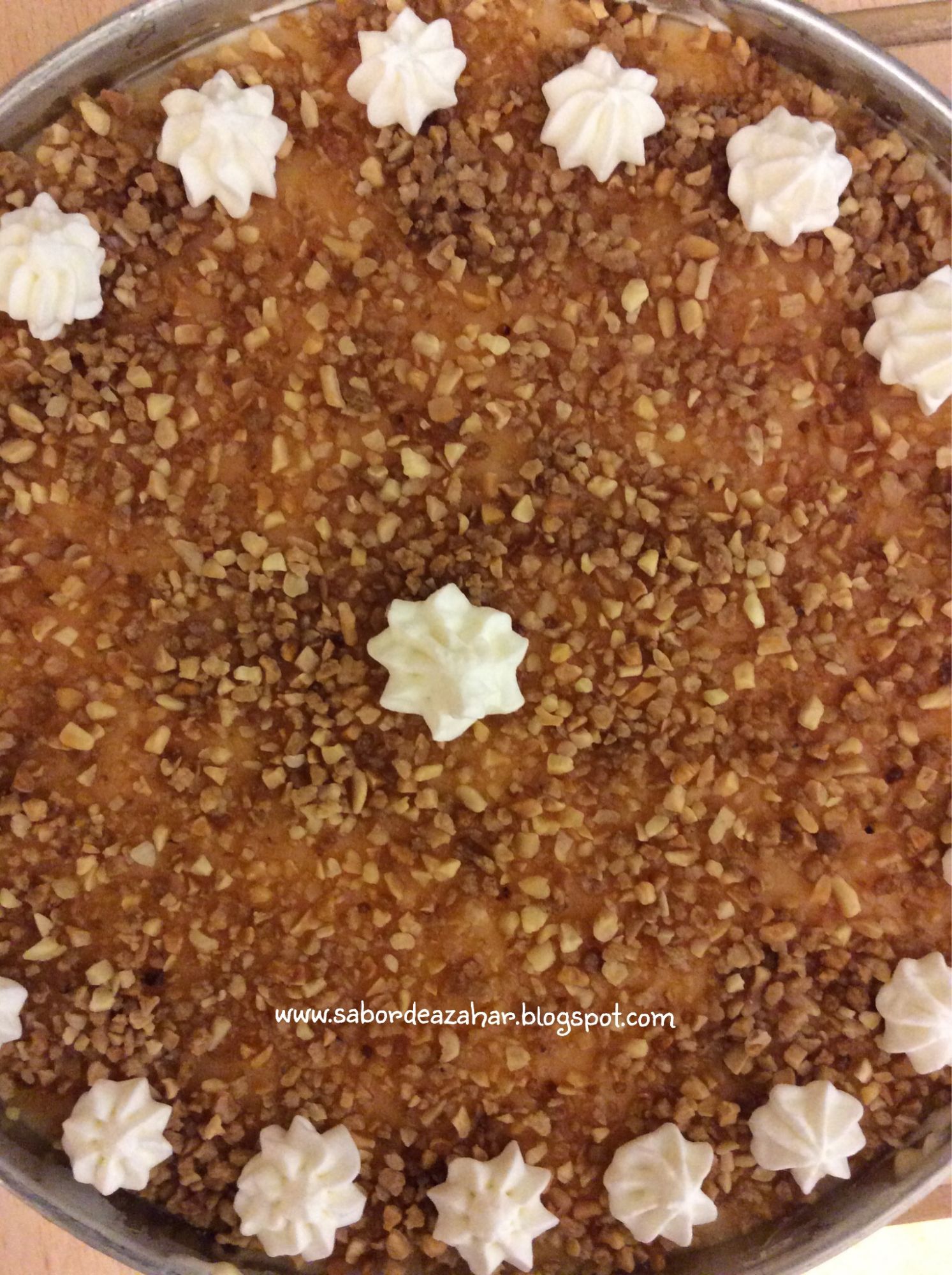 Si queremos dar otro toque a la tarta la podemos espolvorear con azucar moreno y quemarla con un quemador. De ese modo está deliciosa también.