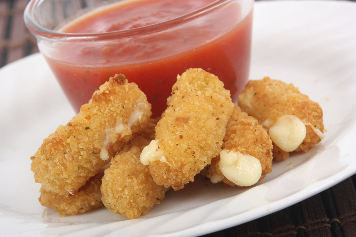 Calentamos el aceite a 190°C e introducimos los bastones. Freímos lo justo hasta que se doren ligeramente, antes de que se abran y el queso salga. Servimos inmediatamente para que el interior permanezca fundido.
