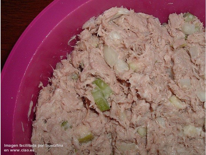 Se pica la cebolla, los pepinillos y las aceitunas y se añade al bonito.