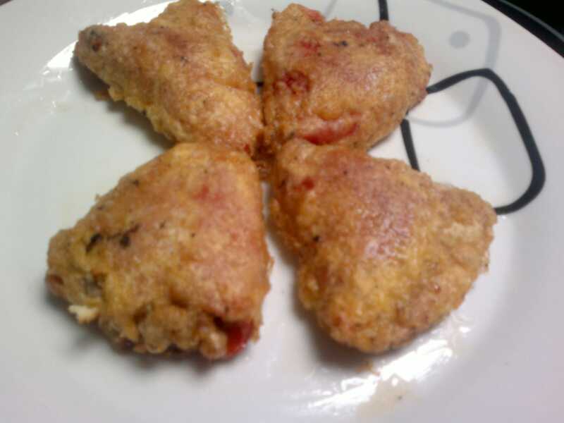 Se cogen los pimientos y se van rellenando. Se pasan por harina uno a uno y luego por huevo.