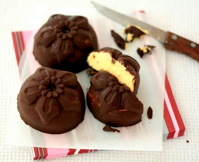 Funde el resto del chocolate y repártelo por encima del helado (una capa fina, si no será imposible cortarlo cuando se enfríe). Vuelve a meter en el congelador y desmolda justo en el momento de servir.