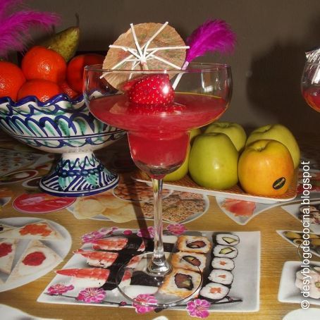 mezclar los ingrdientes en una cocktelera . cerrar. agitar hasta obtener un poco de espuma, servir en copas adecuadas como en la imagen (copa margarita)