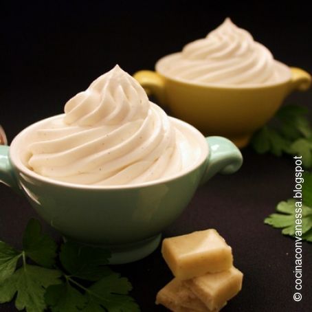 Metemos al frigorifico durante 3 horas. Pasado este tiempo sacamos y vamos disponiendo en una copa en el fondo un poquito de chocolate liquido encima espuma de chocolate blanco y para adornar ponemos un barquillo y unas rallitas de chocolate líquido.
