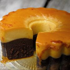 En un molde de silicona (1,5L de capacidad apróx.) poner el caramelo o dulce de leche (si usas otro molde primero enharinarlo y enmantequillarlo para que luego se desmolde bien) Tamizar la harina junto con la levadura y el cacao puro en polvo (Con un colador encima de un bol dándole toques con la mano)