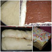 En una mesa enharinada estiramos la masa en forma rectangular y untamos con el relleno. Enrollamos la masa los dos lados hasta centro.
