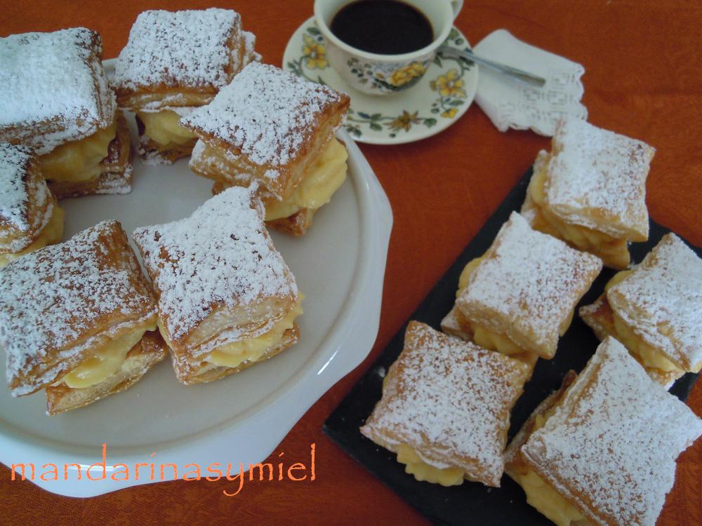 Hojaldres de crema pastelera. Miguelitos.