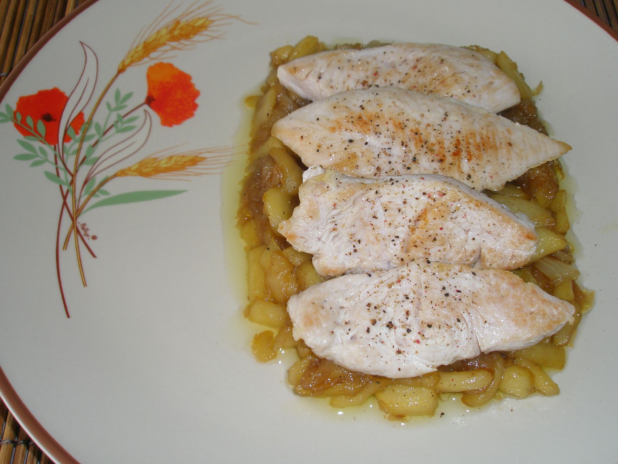 Una vez que la salsa esté lista, la mantenemos al calor y cortamos las pechugas en medallones, los salpimentamos y los hacemos a la plancha o los freímos en un poco de aceite a fuego fuerte hasta que tomen un poco de color, pero sin pasarnos para que no se sequen.
