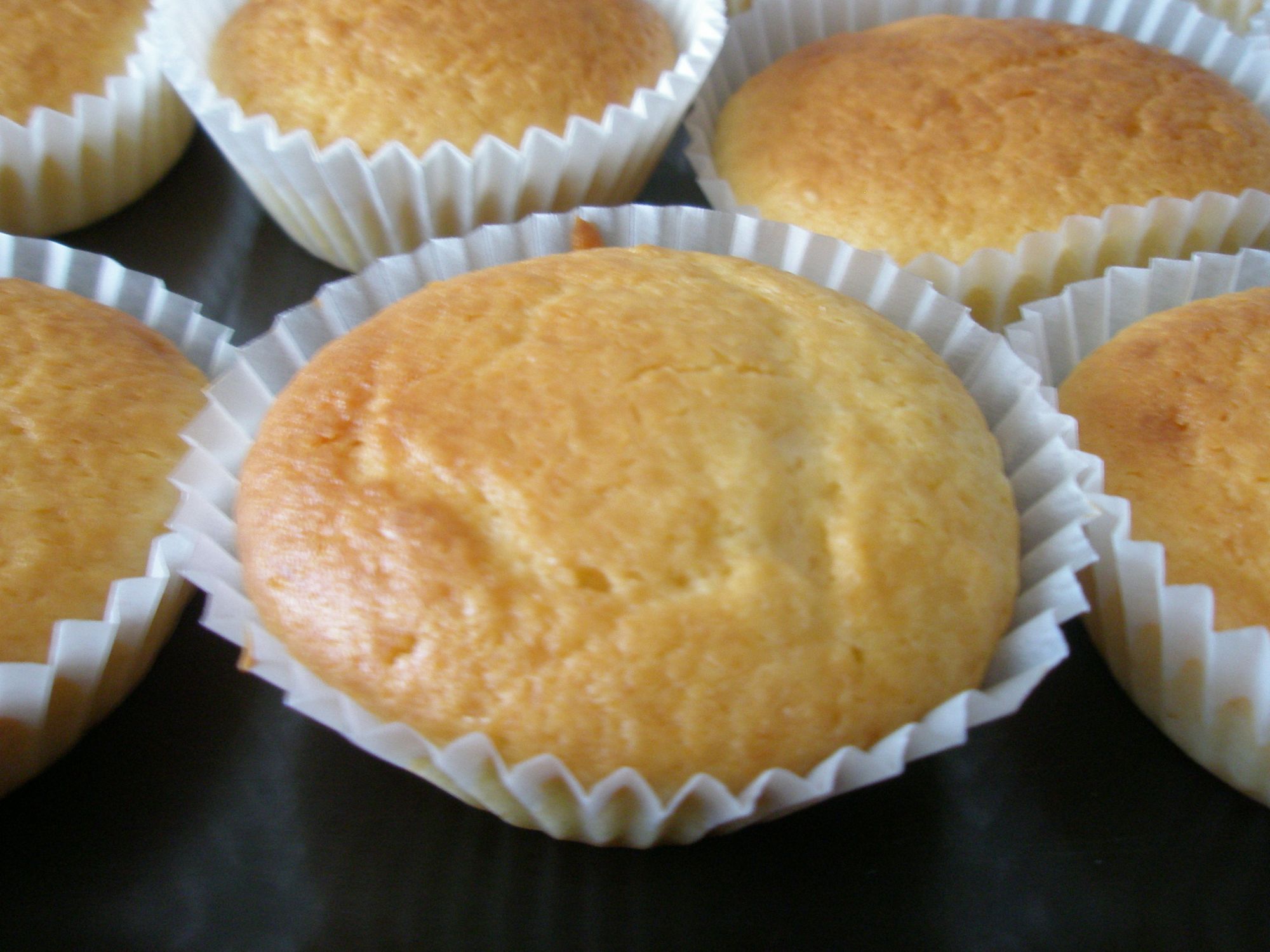 Rellenar las cápsulas de las magdalenas 2/3 de su capacidad , poner un poco de azucar encima y hornear a 180°( con la bandeja en la parte media del horno) durante 15 minutos.