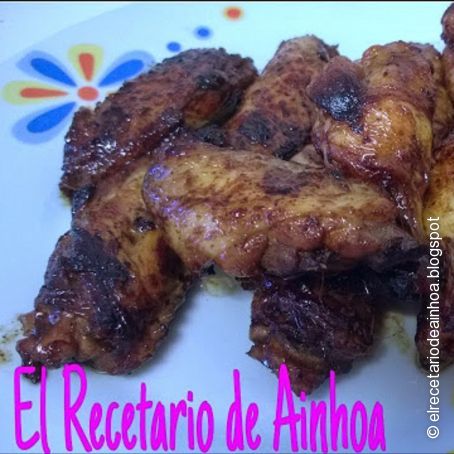 Mientras tanto, volvemos a remover las alitas y les echamos otro poco de salsa de soja.