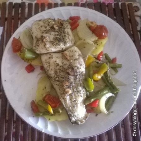 Cerramos muy bien todo el papel como si fuera un paquete , para que se cueza todo muy bien y lo metemos al horno a 180ªc. durante 50 minutos.