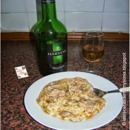 Y ya tenemos listo nuestro arroz con pollo podemos acompañarlo de una buena ensalada y una buena copa de vino como es mi caso de palo cortado un vino estupendo.
