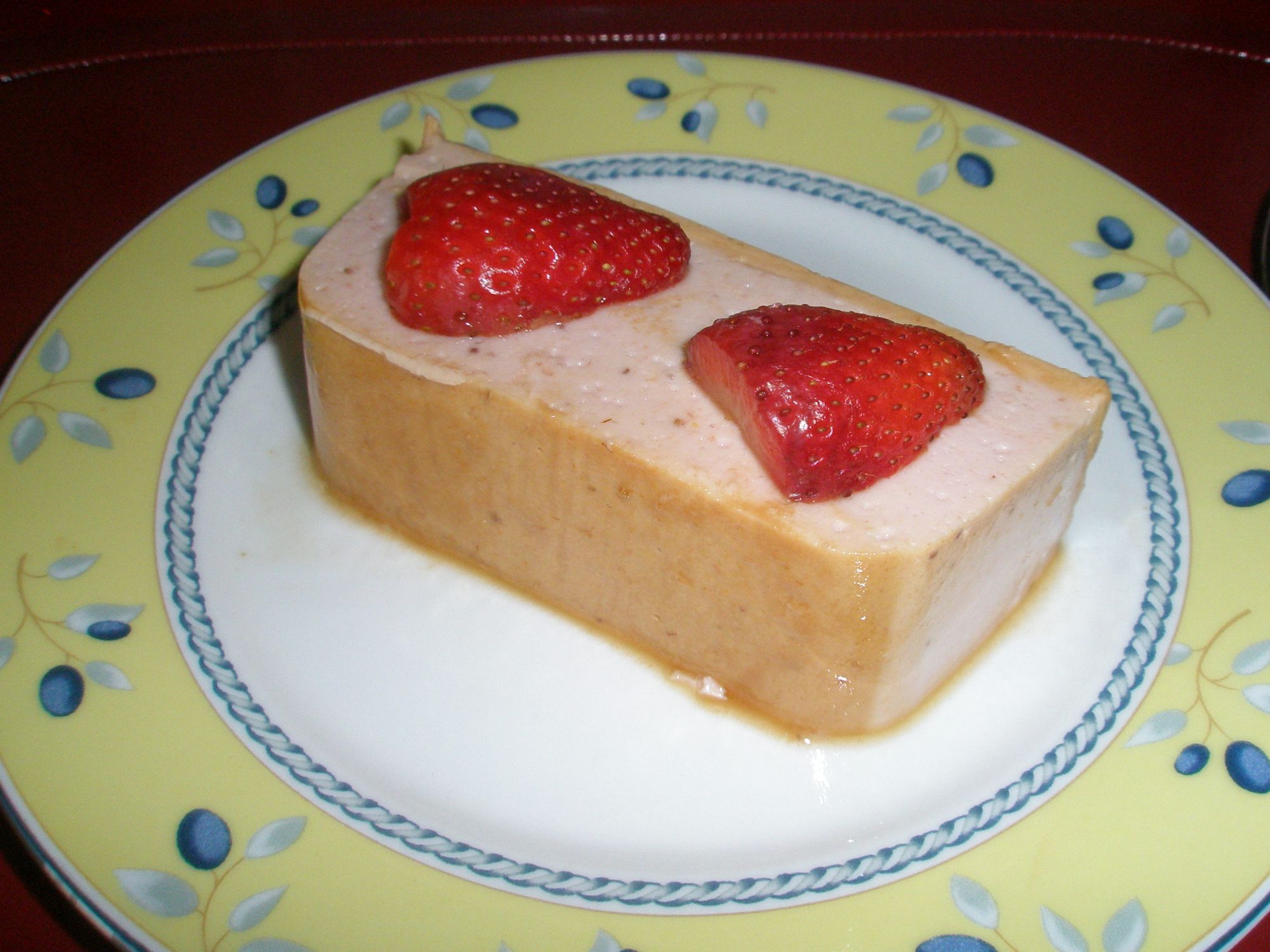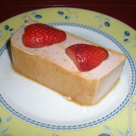 A la hora de servir, pasamos el filo de un cuchillo por el borde para despegarlo, lo volcamos sobre una fuente y lo decoramos por ejemplo con fresas cortadas.