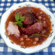 En el aceite que tenemos templado, echamos el pimentón para refreírlo ligeramente y el majado del mortero, removemos y agregamos las espinacas escurridas y los garbanzos, el caldo reservado, volvemos a mezclar y lo ponemos todo a fuego lento durante 10 minutos para que se integren los sabores y....¡¡ya está!!