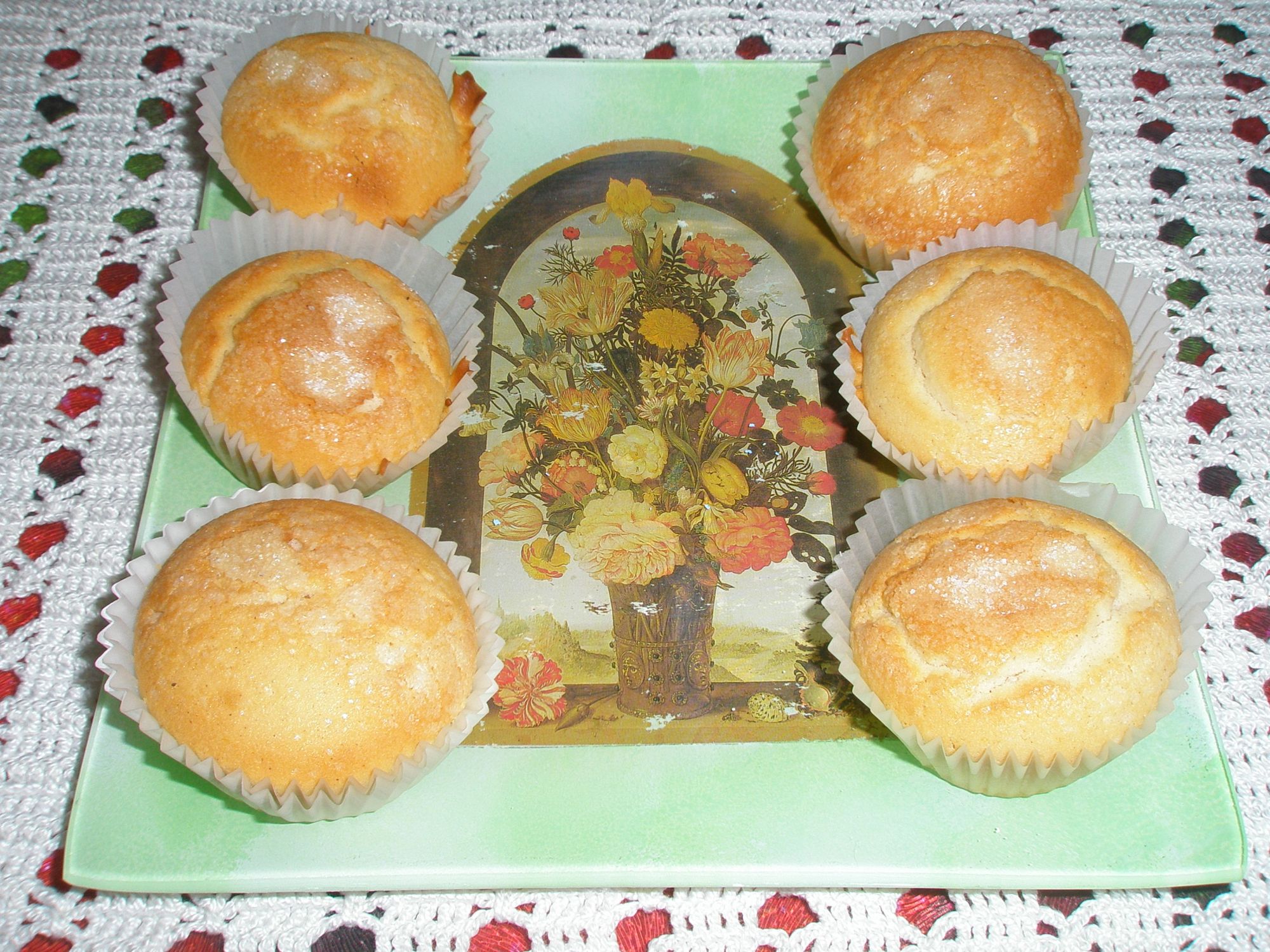 Ahora preparamos sobre la bandeja del horno unos moldes de silicona o de aluminio, ponemos dentro de cada uno un molde de papel y llenamos con la masa hasta 1/3 de la capacidad para que cuando crezcan en el horno no se desborde la masa, ponemos una pizca de azúcar encima de cada magdalena.