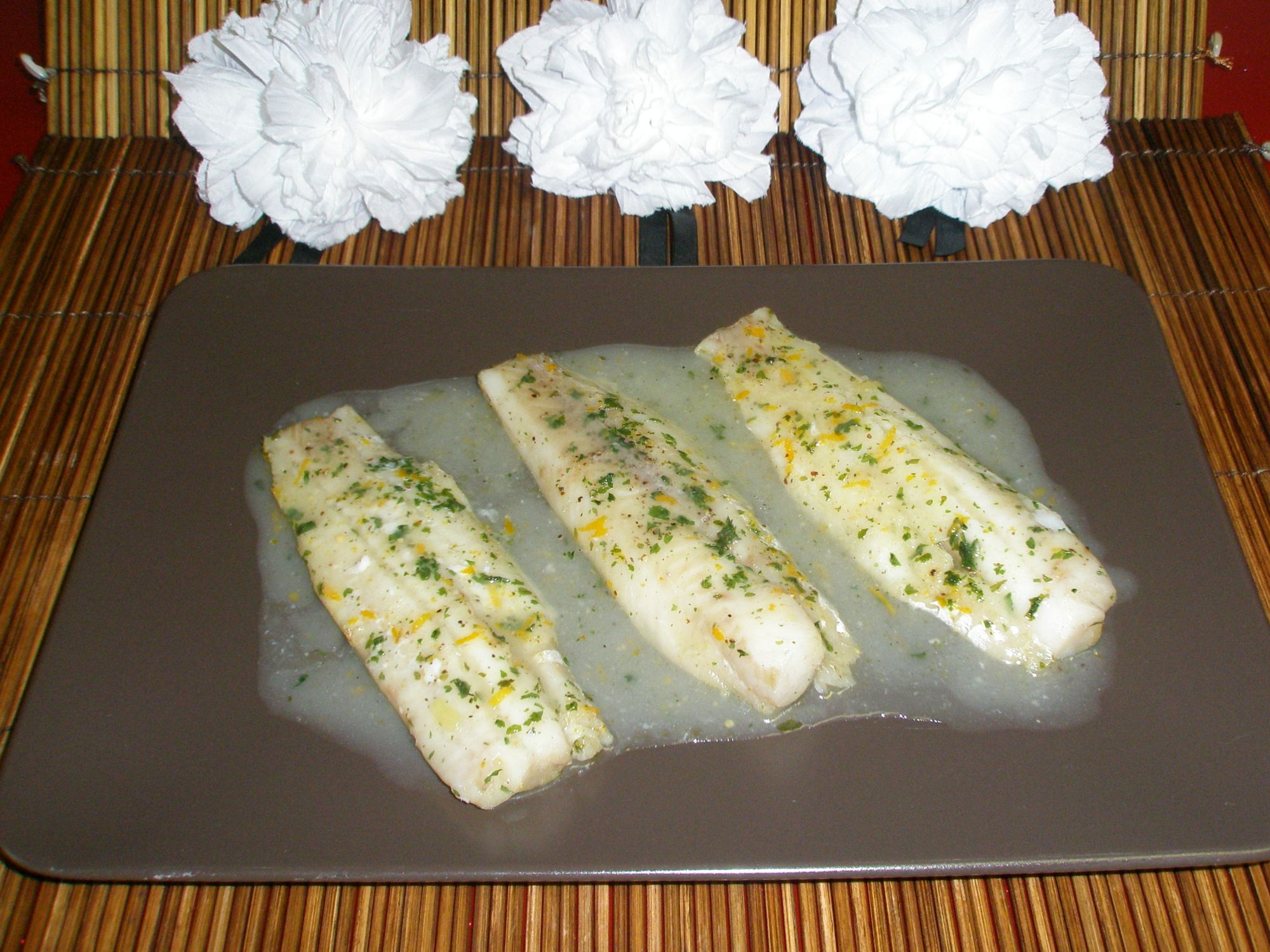 Servimos inmediatamente el pescado cubierto por la salsa. Yo para la próxima vez reduciré el caldo en un cazo o lo espesaré con un poco de maizena disuelto en agua fría para que quede mejor la presentación.