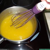 El jugo de la lata de piña, lo pondremos al fuego en un cazo, y cuando comience a hervir, disolvemos en el los dos sobres de gelatina de limón (como opción, os proponemos probar con gelatina de piña en lugar de limón, y seguro que le da un toque diferente. Nosotros la próxima vez lo probaremos así!). Removemos para integrarlo bien y retiramos del fuego, dejándolo templar un poco.