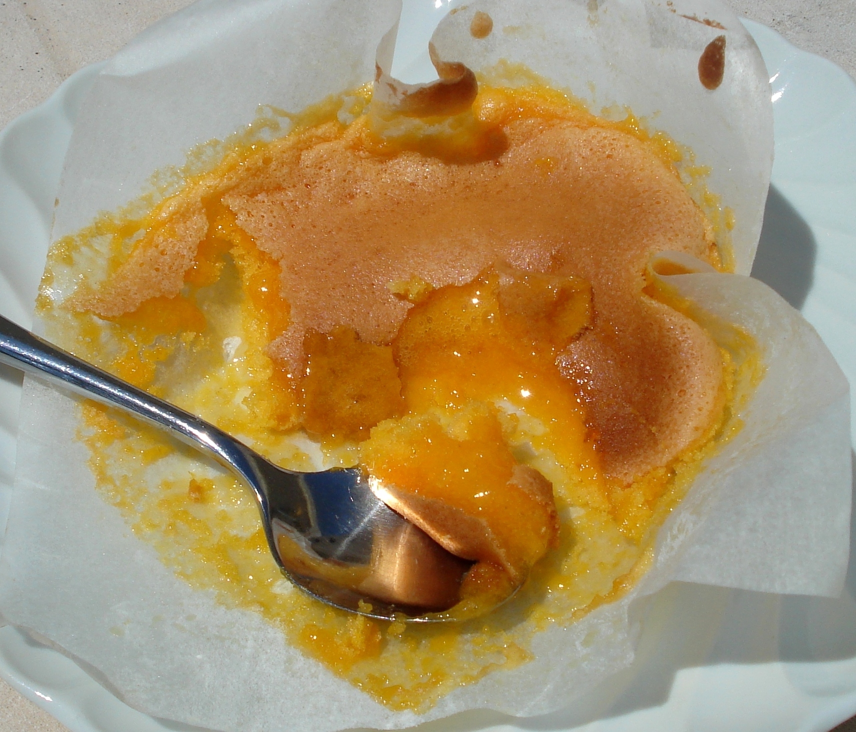 Por su textura, suelo decir que es como un ‘mi-cuit’ versión portuguesa. Sin chocolate pero con el centro muy húmedo, debido a su corto tiempo de cocción, y un sabor incomparable.