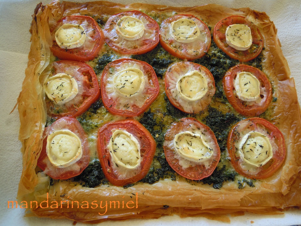 Es una pizza deliciosa...queda muy crujiente y sabrosa, el tomate con el queso es un bocado riquísimo, el pesto de espinacas y el tomillo, le dan un sabor especial.