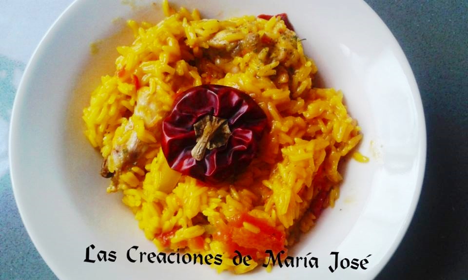 Rallamos los 2 tomates, cortamos un poco de pimiento rojo, verde, la ñora y los sofreímos. Mientras cortamos las alitas y las enharinamos, los echamos a la paellera, cuando estén doraditos echamos el arroz removemos y echamos 1 tacita de vino blanco. Echamos el doble de caldo que de arroz. Echamos 1 cucharadita de ajo en polvo, 1 cucharadita de cebolla en polvo, 1 poquito de sal y 1 pizquita de azafrán lo justo para que le de color, dejamos que se vaya haciendo poco a poco. Cuando este hecho lo apagamos, lo tapamos con papel albal y lo dejamos reposar unos 5 minutos.