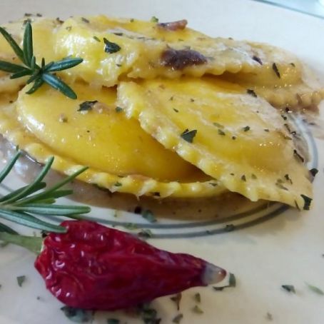 Colocamos la harina haciendo un volcán y ponemos en el centro los huevos batidos, la sal y el aceite. Comenzamos mezclando con un tenedor, para acabar amasando con las manos. En unos 10 minutos tendremos una masa nada pegajosa y muy bien integrada. Tapamos con un film y dejamos reposar una media hora. Una vez reposada utilizaremos una mesa que previamente habremos enharinado, partimos nuestra bola de masa madre en cuatro partes y a darle al rodillo hasta dejar nuestras 4 partes de la masa del grosor aproximado de2 a3 milímetros. No os quejéis que encima estaremos haciendo ejercicio que nos vendrá muy bien....Comencemos por nuestro relleno, para evitarnos tiempo, en una ollita ponemos las espinacas a cocer con una pizquita de sal. Por otro lado tomamos las peras, las pelamos, descorazonamos y cortamos en pedacitos tamaño bocado para que su cocción sea mas rápida, aun así deberán estar aproximadamente cociendo en agua y dos cucharaditas de azúcar una hora para que queden muy tiernas. En el tiempo que se terminan nuestros productos de relleno prepararemos nuestra salsa. Cortaremos en cuadraditos muy finos nuestra cebolla que pocharemos en un chorrito de aceite a fuego lento. Cuando esté transparente agregamos nuestras pasas dejándolas rehogar unos 3 minutos y añadimos nuestra nata, dejando reducir unos 10 minutos a fuego muy lento. Ahora llega el momento de la verdad. Con un cortapastas cuadrado de un tamaño de unos4 cmempezamos a cortar nuestra masa, es muy sencillo. Tomamos uno de los cuadrados, con una cucharilla pondremos una porción de espinacas, otra de queso ricotta y otra de nuestra compota de peras, cogemos otro de los cuadrados que hemos cortado y solapamos el anterior, lo cerramos bien por los bordes sirviéndonos mismamente de un tenedor, pisándolo fuerte y repetimos la misma operación hasta que hayamos terminado con todos. En ese momento pondremos agua a hervir con una pizca de sal y cuando haya roto la ebullición iremos sumergiendo nuestros raviolis despacito dejándolos aproximadamente 3 minutos, los sacamos, enfriamos en agua y los meteremos en la salsa que hemos preparado previamente y los mantendremos unos 4 minutos más. Nuestro toque final se lo daremos con un buen queso parmegiano rallado y unas hojitas de albahaca picaditas.