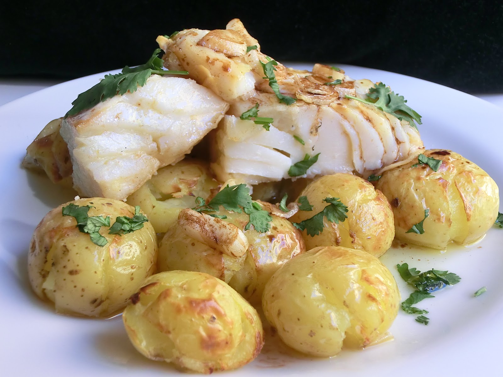 Pasadas las dos horas sacamos el bacalao de la leche condimentada y lo pasamos por huevo batido, pan rallado y se ponen en una fuente de barro. Colocamos sobre cada lomito sobre una nuez de mantequilla o de margarina y lo regamos todo con el aceite de oliva (que no debe cubrir el bacalao), junto con 3 cucharadas de la leche en que se marinó y los dientes de ajo. Lo introducimos en el horno a 150°-160° unos 20 minutos, bañándolo de vez en cuando con el aceite que está en la fuente.