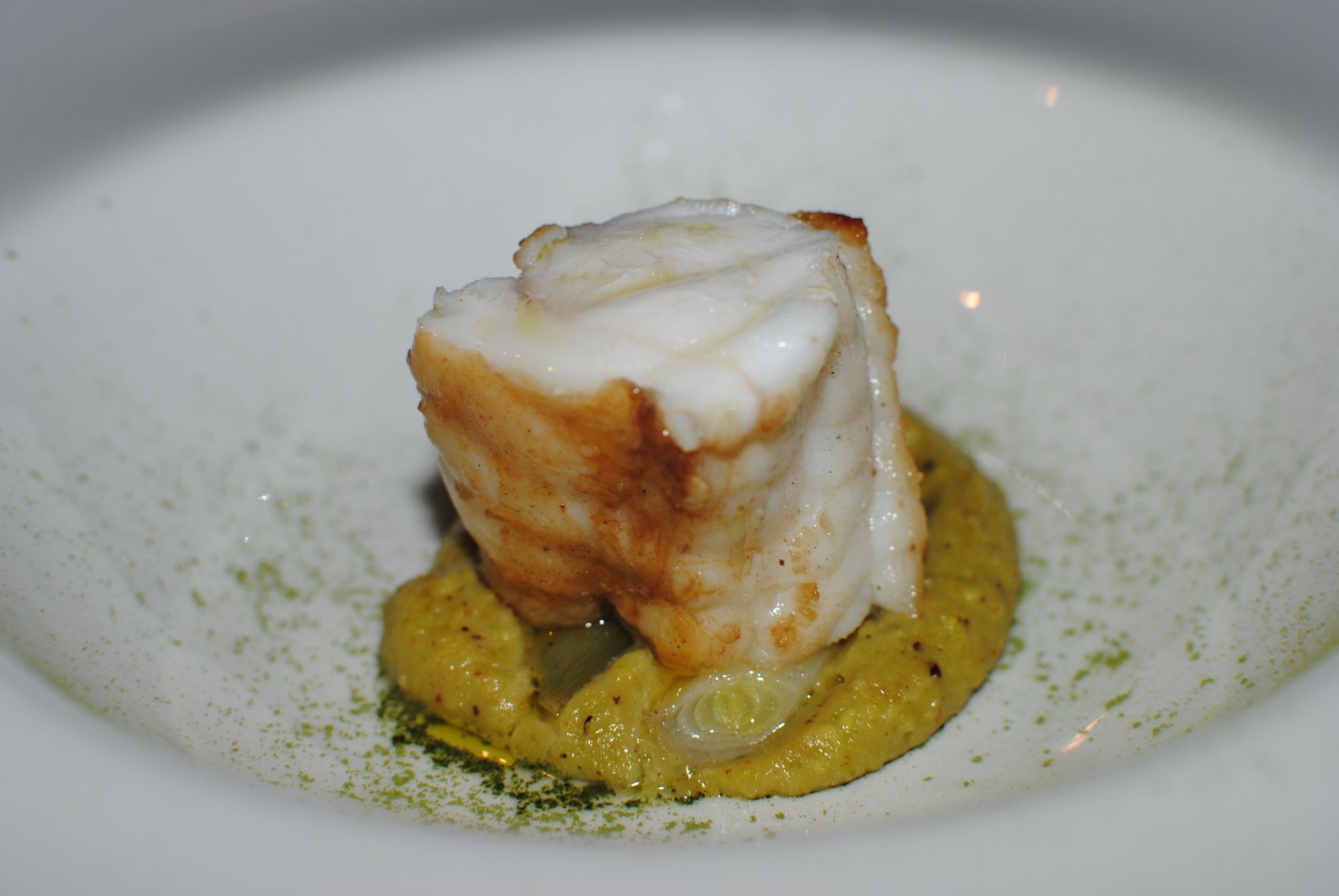 Pintamos el fondo con nuestra crema de manzana, situaremos el lomo de rape en el centro y colocaremos los trigueros sobre el (tenéis una idea en la foto), para tener un contraste de colores, podéis usar la piel de la manzana haciendo un rizo en el plato. Podéis acompañarlo también con patatas paja y crujientes de puerro.