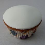 Untar la superficie del cupcake nuevamente con la mermelada de mango Hero. Y tapar con el fondant que anteriormente hemos cortado.