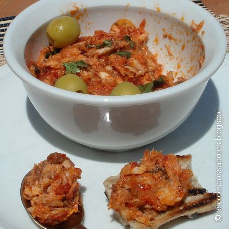 Colocar en un bol y servir con tostadas (aquí con pan con aceitunas).