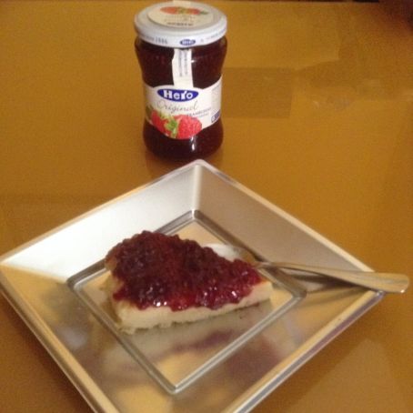 Exquisita tarta de queso con recubrimiento de mermelada de frambuesa o al gusto